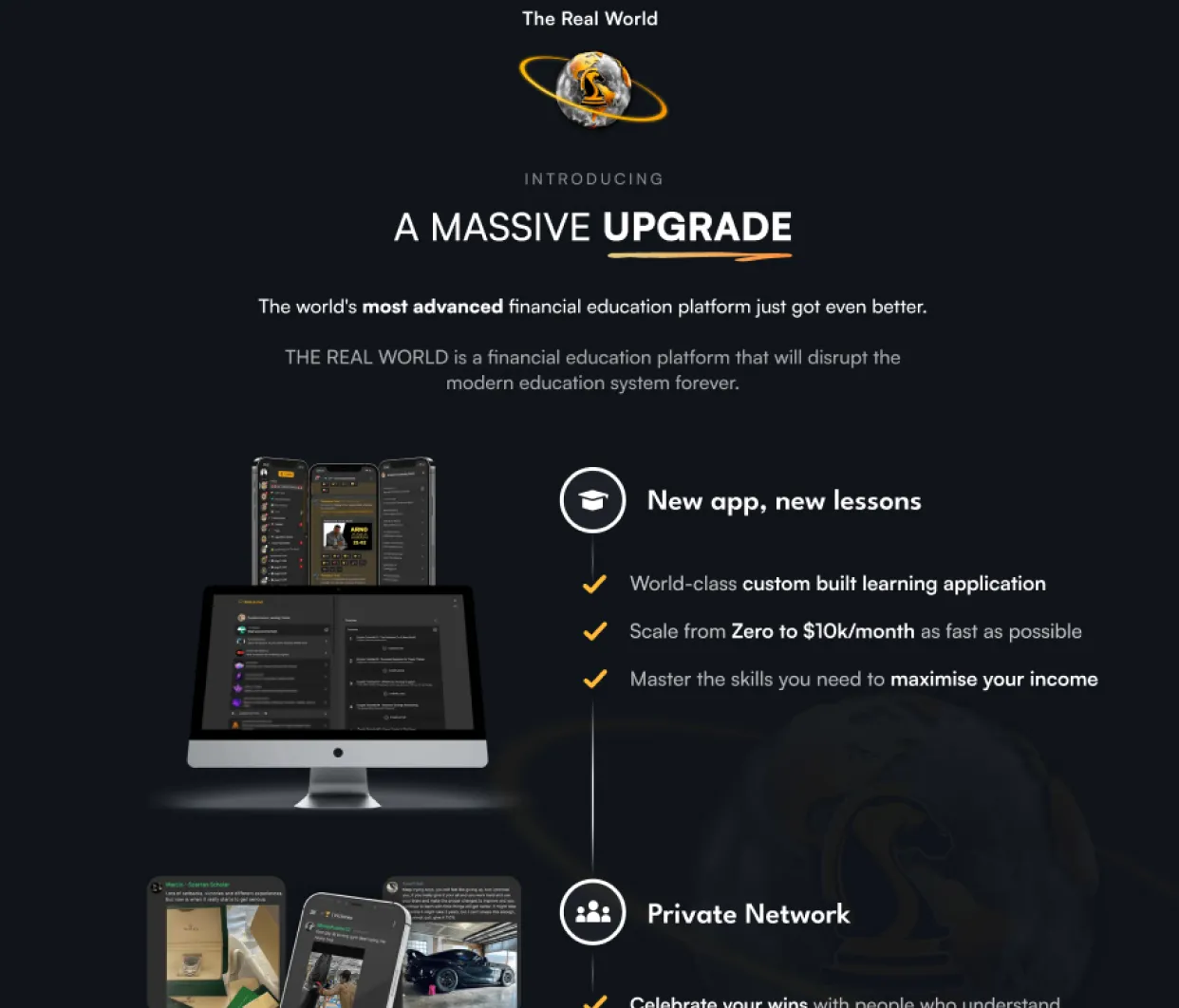 The Real World is an online education platform with hundreds of thousands of active users, disrupting the traditional education system by teaching 19 modern wealth creation methods inside their app.