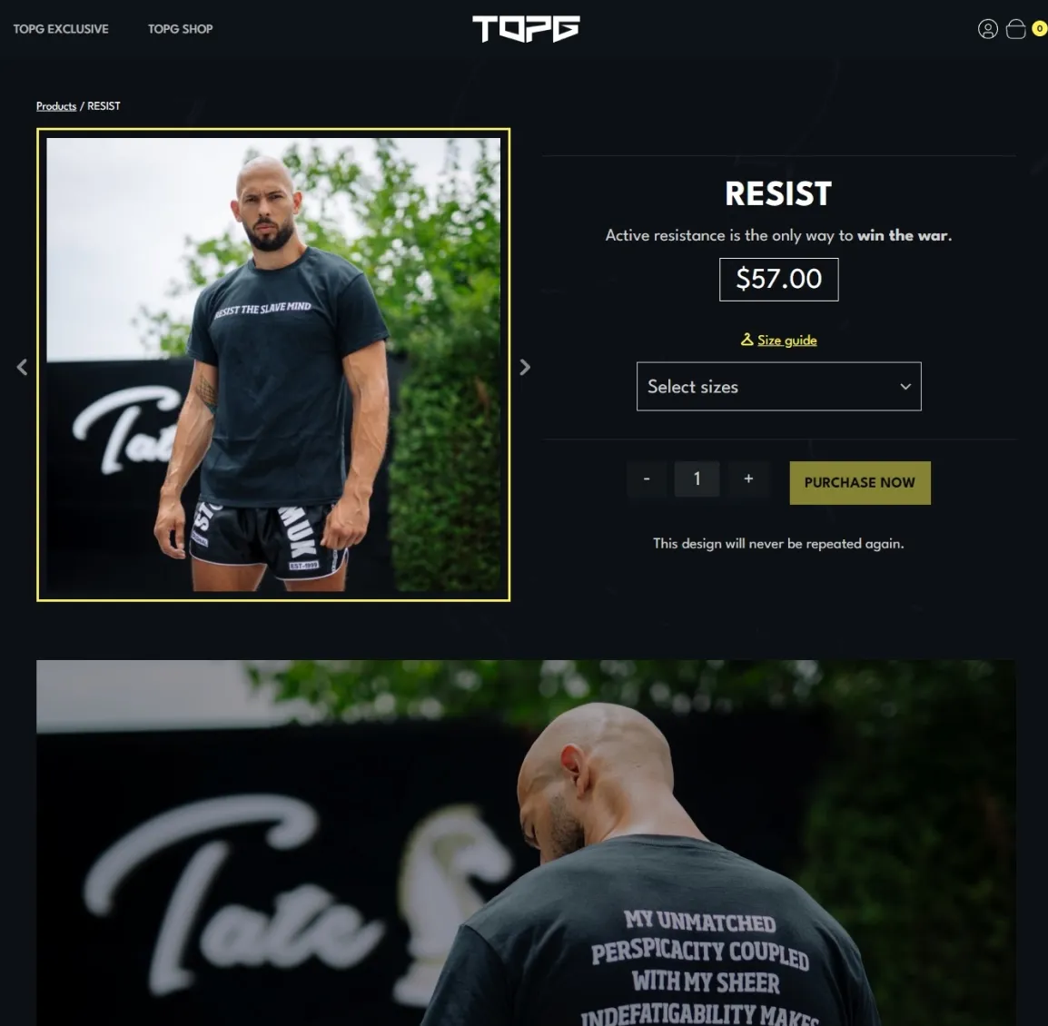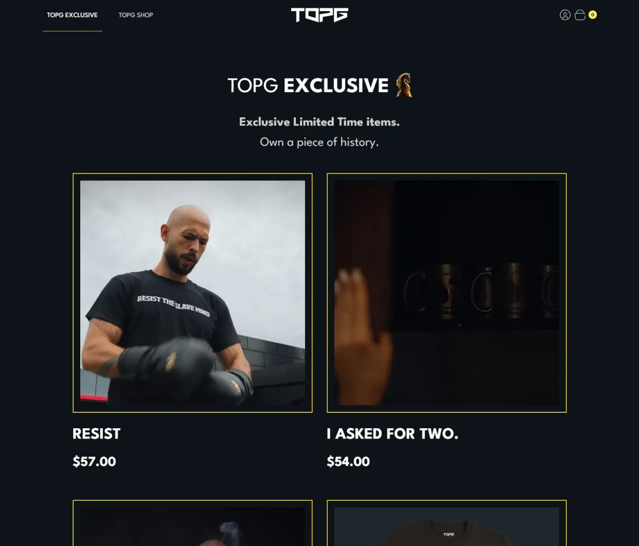 TopG.com is Andrew Tate’s official merchandise store. The clothing and items are promoted on Tate’s Rumble livestreams, meaning the site gains hundreds of thousands of visitors.